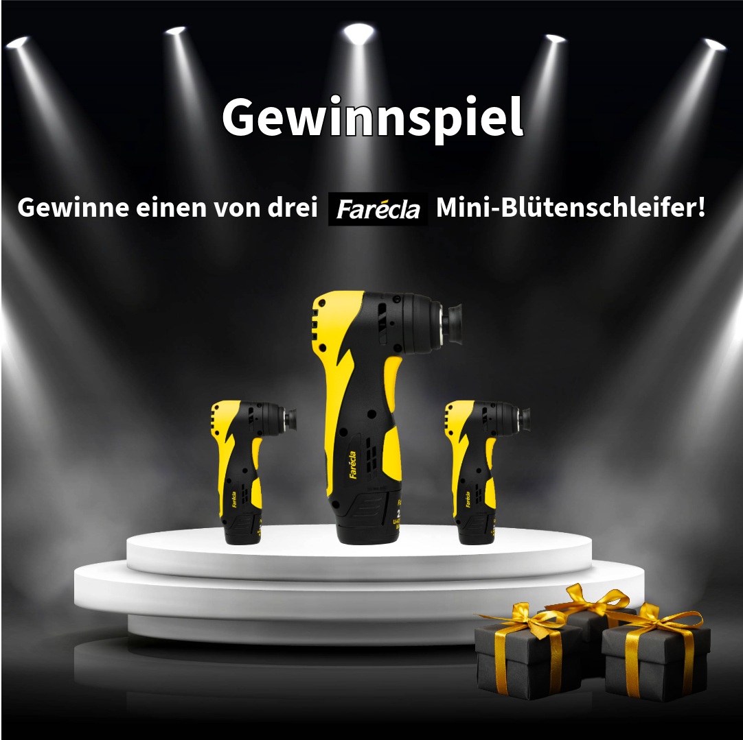 Gewinne einen von drei Farécla Mini-Blütenschleifern. Folge uns und verlinke deine drei Lieblingsarbeitskollegen unter diesen Beitrag.
